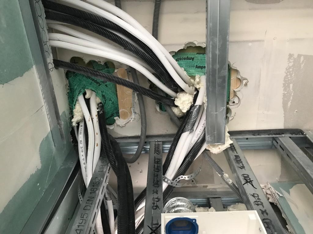 Použití aplikační pistole AEROFIXX a vzduchotěsného nástřiku AEROSANA VISCONN FIBRE white pro vzduchotěsné utěsnění různých prostupů a spojů.